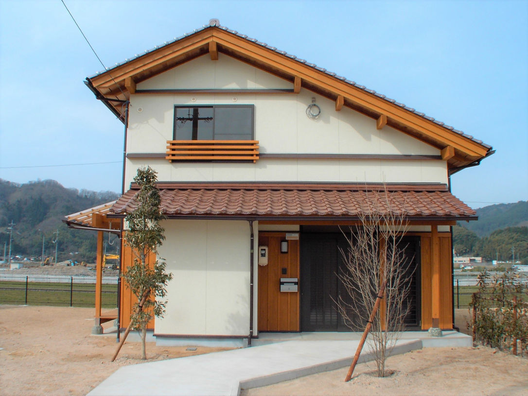 一戸建てタイプの公営住宅です。シンプルで使いやすい外観・間取りに、2階の床や屋根面を直接天井として表すことで建築コストの削減を図りました。